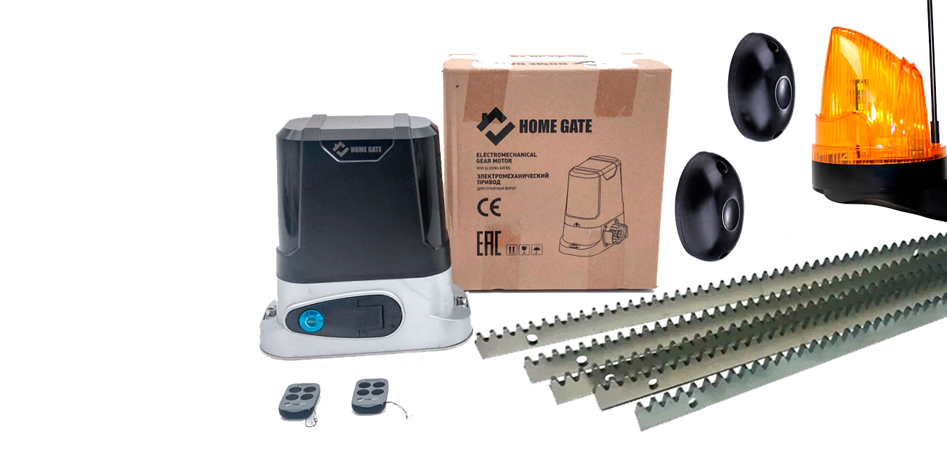 Комплект для откатных ворот HOME GATE LTM 800 + рейка 5 шт + фотоэлементы + лампа